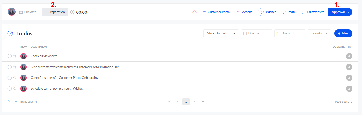 Die Website wurde erstellt und von einem anderen Teammitglied geprüft. Jetzt ist es Zeit, dass dein Kunden dein Design bestaunt. Möglicherweise hat er ein paar Vorschläge oder Anmerkungen zu einigen Sections. Dann kann er sein Feedback genauso über die To-do-Funktion anmerken, wie deine Kollegen es im Status Audit getan haben.