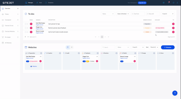 - Klicke auf "Upgrade" im oberen Menü oder auf "Veröffentlichen" unter dem Namen einer Website