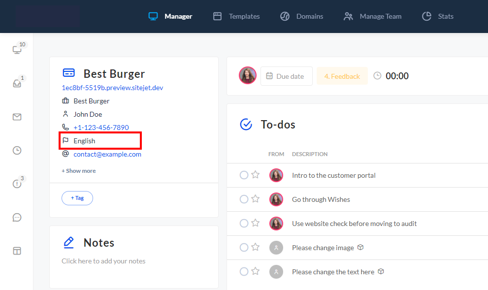 In Sitejet kannst du an unterschiedlichen Stellen Spracheinstellungen vornehmen. Du kannst die Teamsprache festlegen in der das gesamte Tool angezeigt wird, sowie die Sprache für deine Kunden, das Kundenportal und Websites beeinflussen.