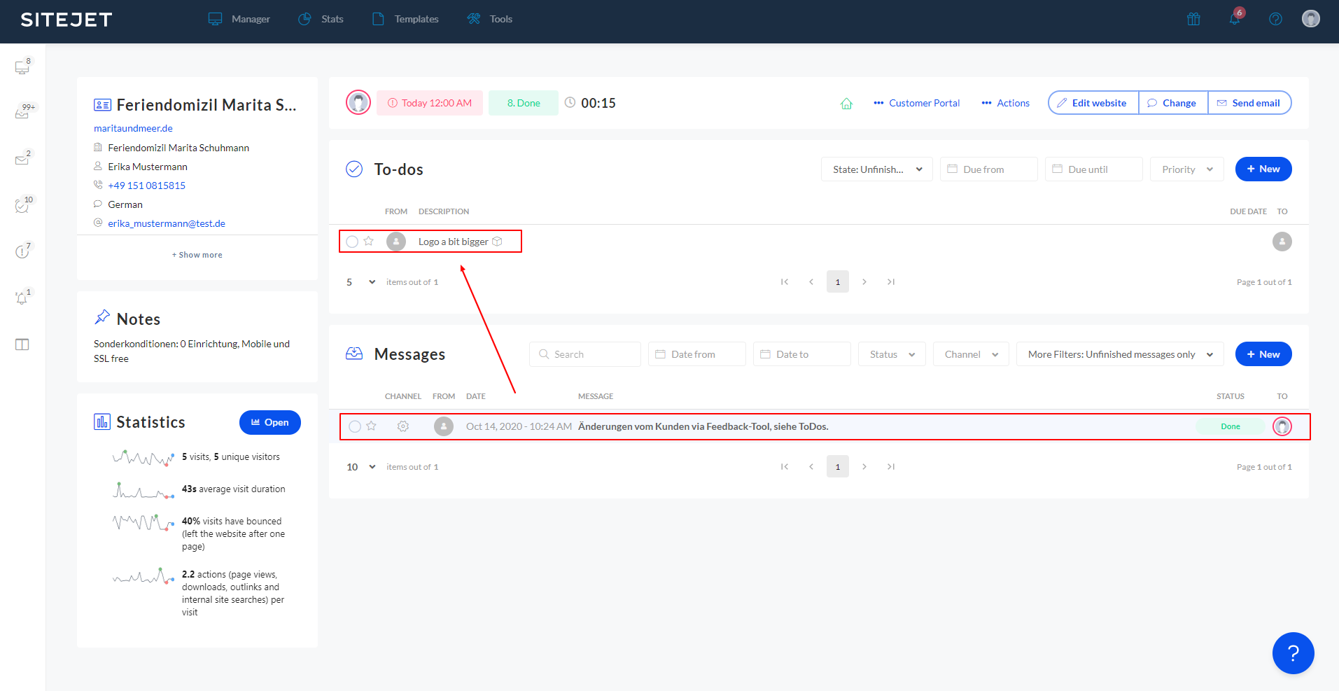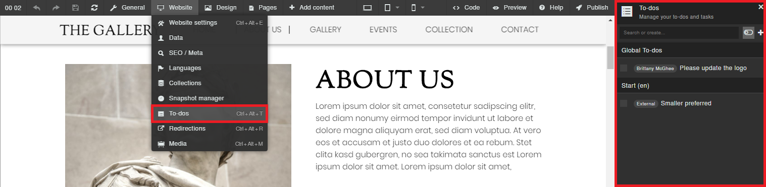 Im Websitebuilder (CMS) kannst du dich jetzt bequem um das Feedback kümmern. Klicke dafür auf "Website" und dann auf "To-dos".