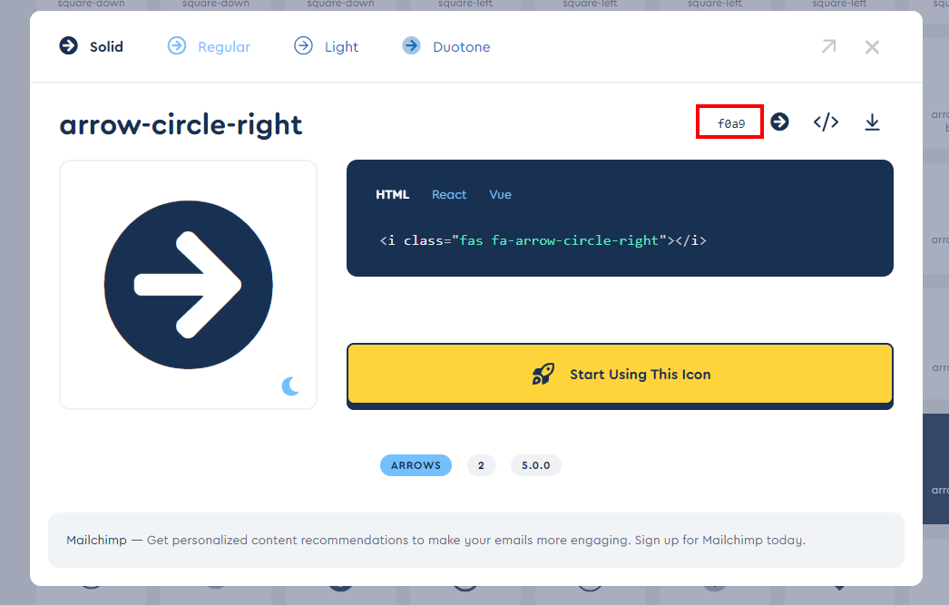 - Öffne die Seite von Font Awesome und suche nach einem passenden Icon