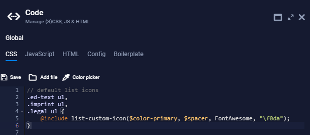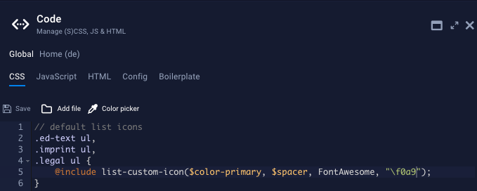 - Dann wechsel zum CSS Tab und füge das kopierte Code Snippet hier in dein Website CSS ein