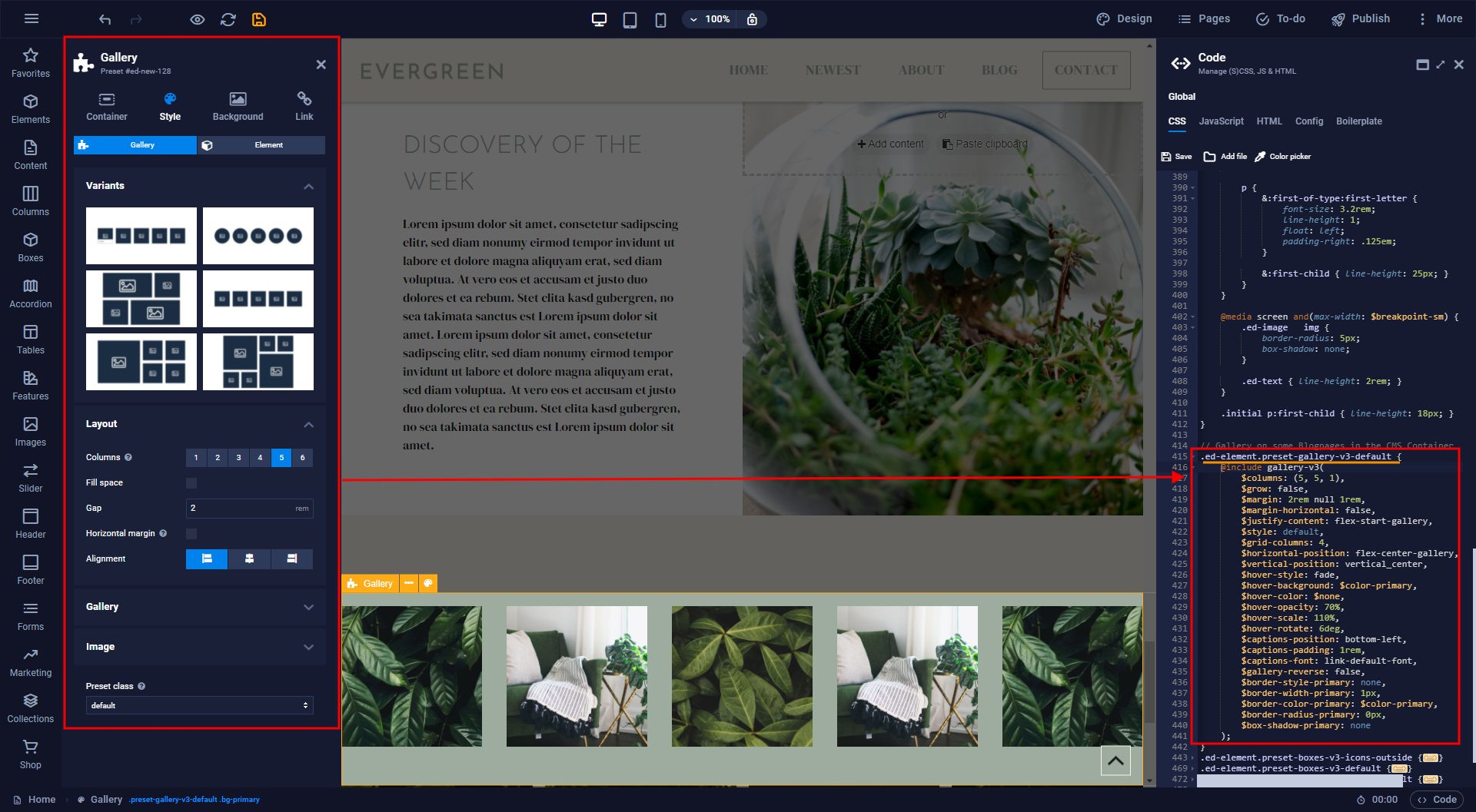Using presets makes website building a breeze. For example, the Gallery preset lets you choose between several pre-built variants to give your gallery a stunning look that fits your style. Variants are sets of options for a preset. You can customize the preset to your needs by using the settings below.