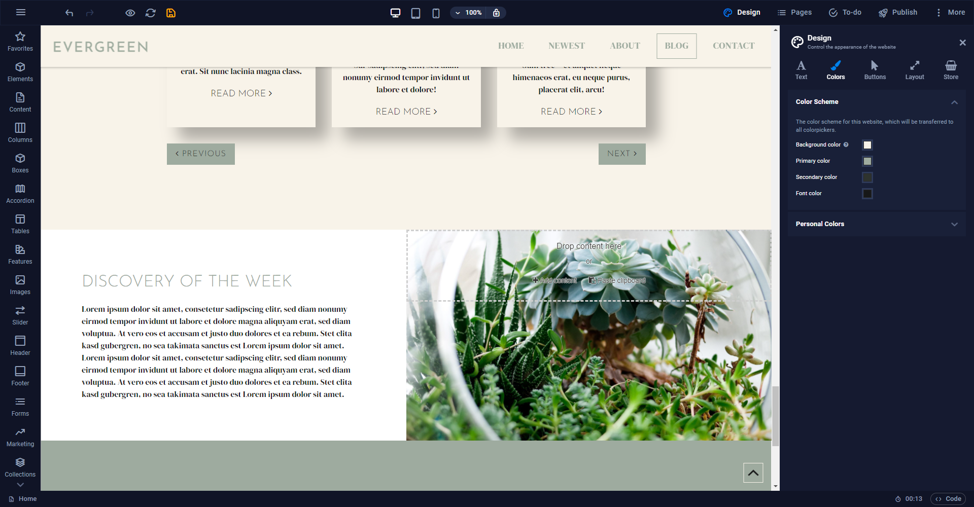 Under "Design" you can easily control site-wide, or global, options such as font size and color, layout settings, buttons, and more. Our help article on the topic provides more information about design settings.