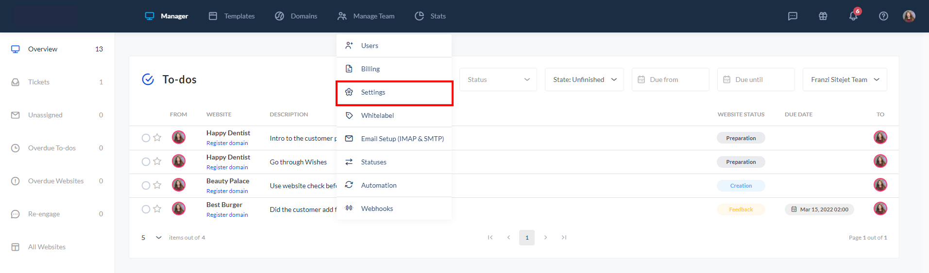Sitejet offers different settings to manage the language that is used throughout the tool as well as for your customers, their portal, and their websites.