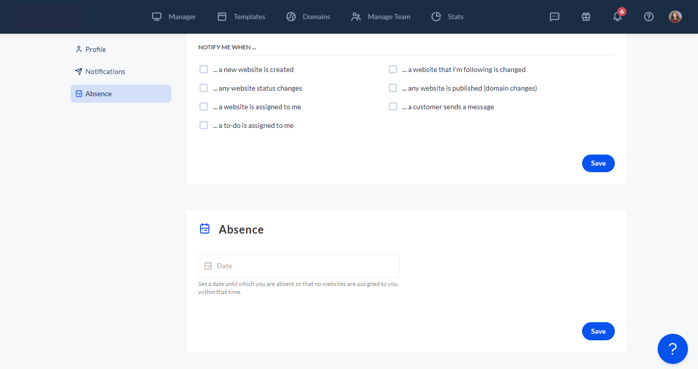 This feature ensures that no websites can be assigned to you during your absence by mistake. Simply set a date until which you will be absent and from the day you set the absence until your day you will return and no websites can be assigned to you.