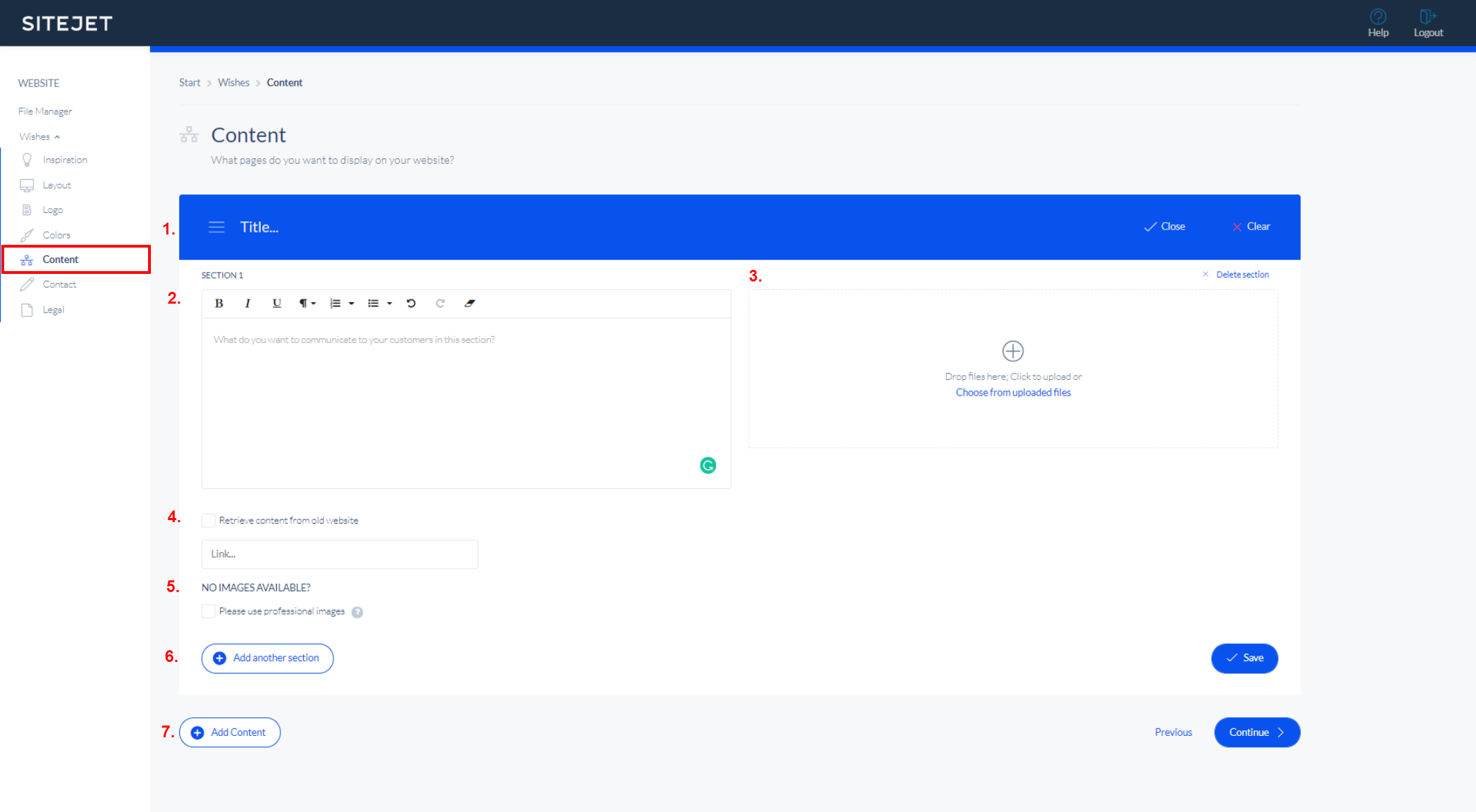 - Upload images or files that reflect their website ideas and