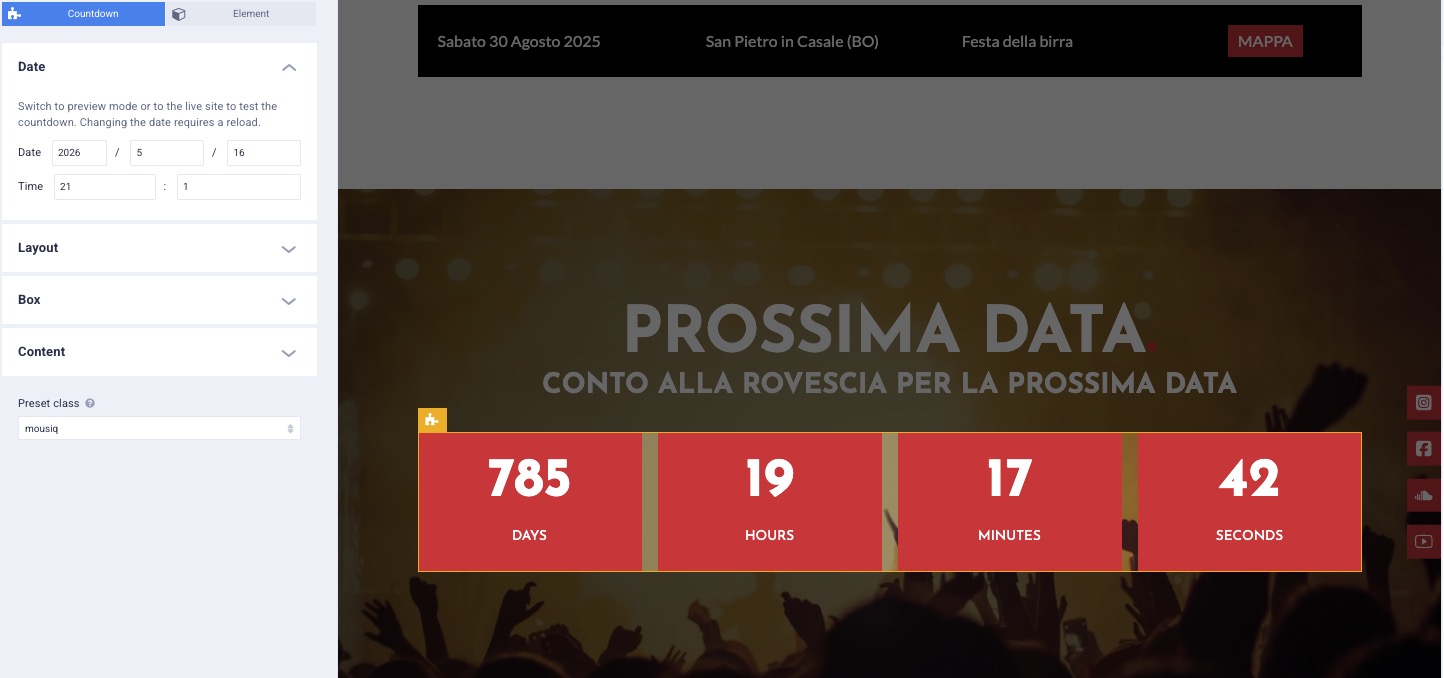 The countdown preset is a fun feature to inform website visitors about an upcoming event. In this article, you will find all information about adding and customizing the countdown to your needs.