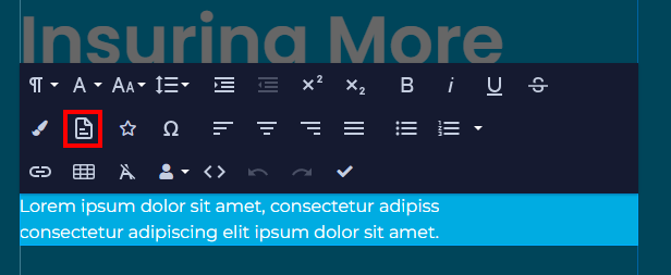 - use the Text Generator icon in the headline and text toolbars, or