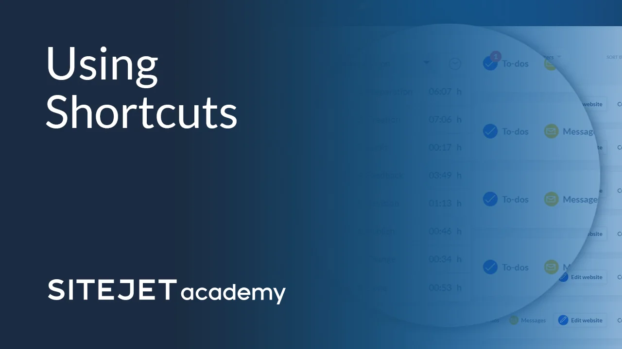 Sitejet is already built to make your workflow in creating new websites fast and easy. By using shortcuts you can increase your speed even more!