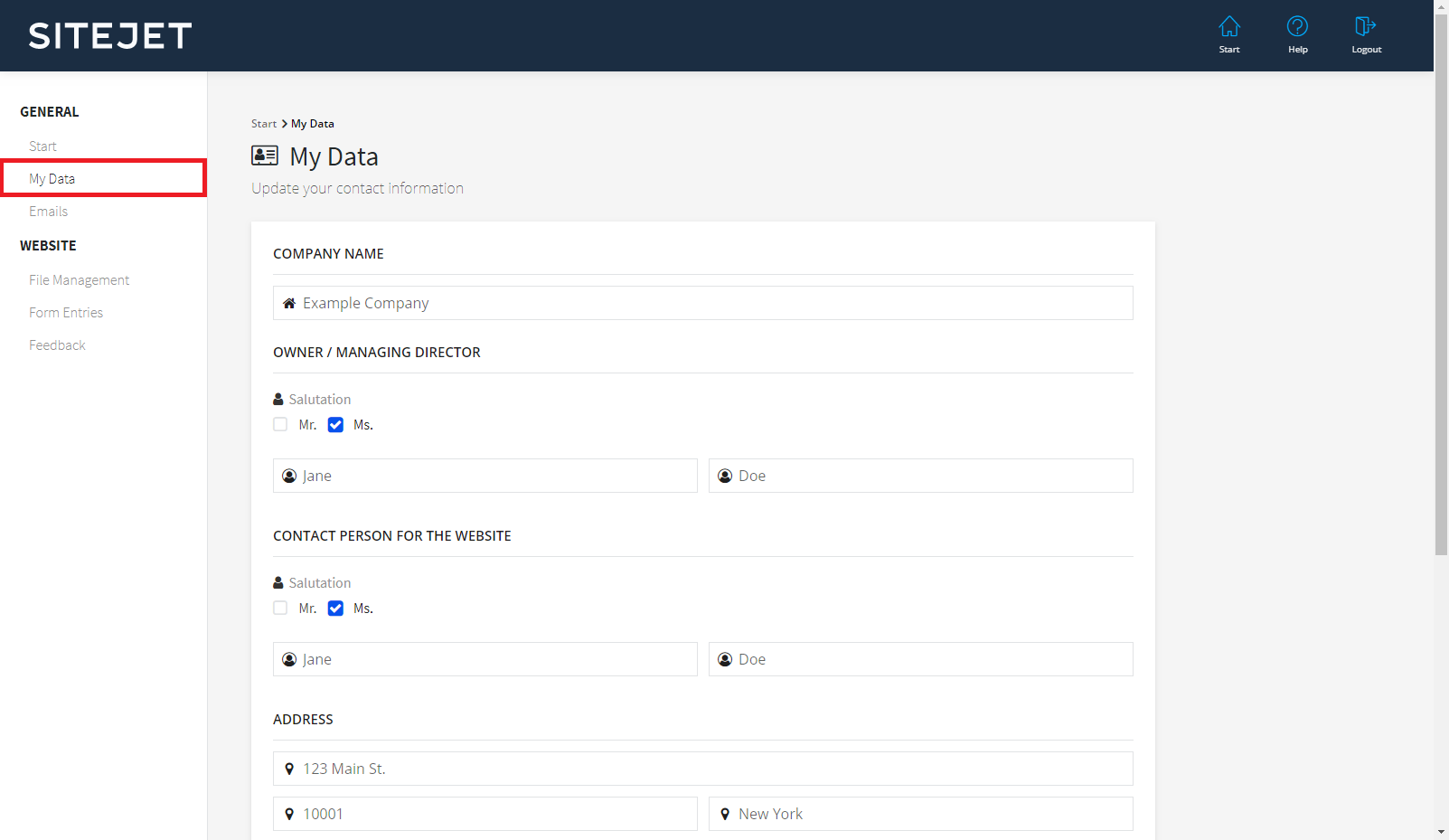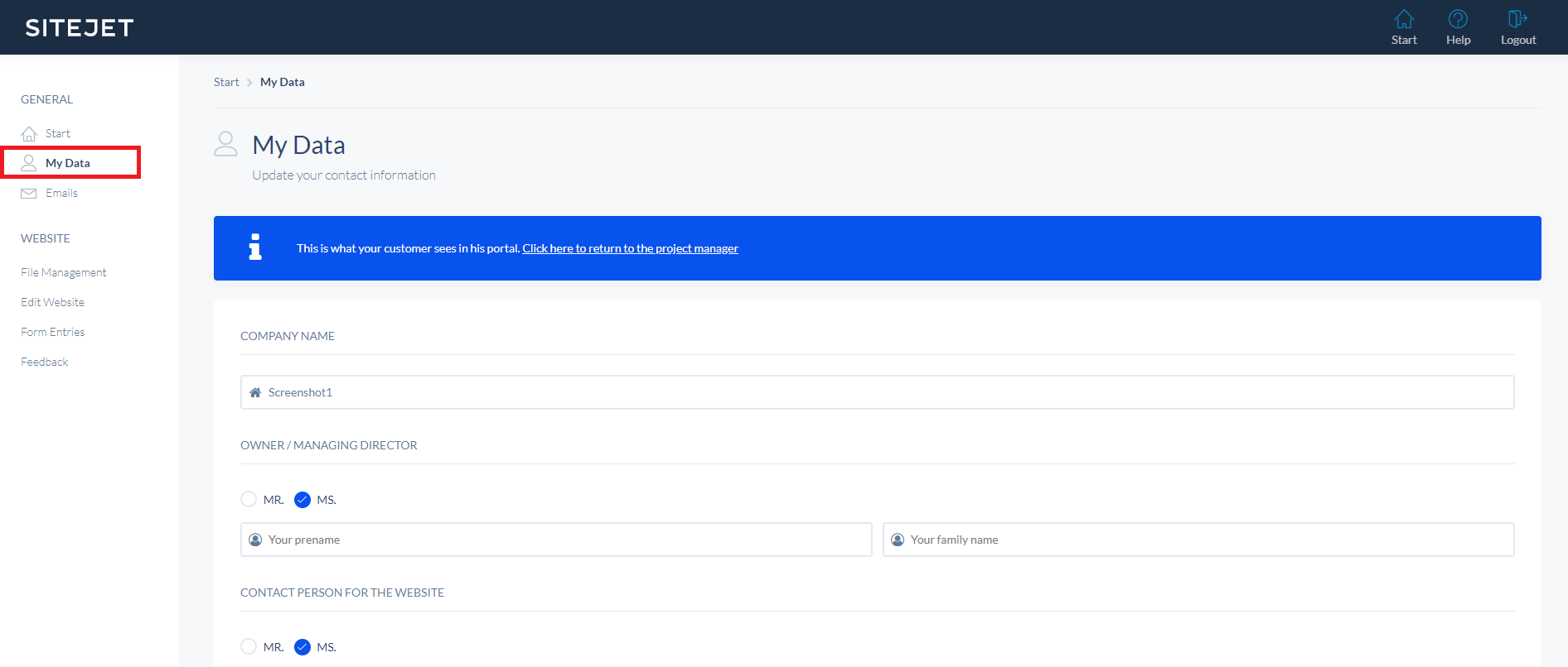 With the Customer Portal, you can benefit from the efficiency of integrating your customers directly into the website creation process. In this article, we show you how your customers can enter their contact data into their portal themselves.